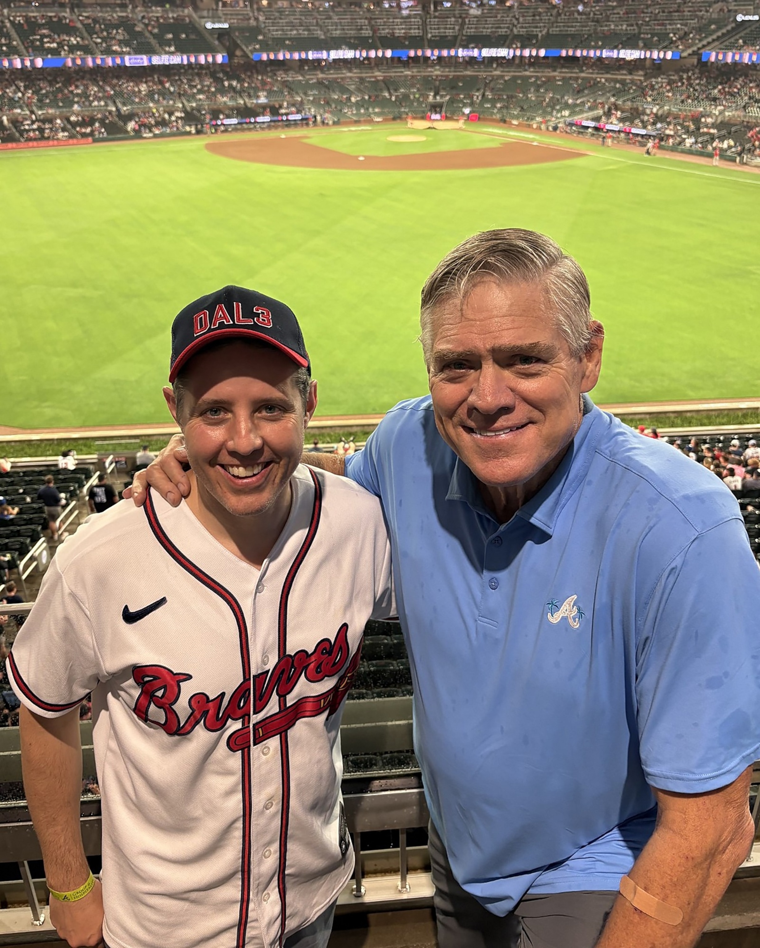Rick Klein and retired baseball outfielder Dale Murphy are seen at Truist Park, ballpark of the Atlanta Braves, in summer 2024. Murphy spent most of his career playing for the Braves.