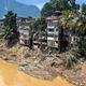 After the autumn: Uprooted bushes line the broken buildings in Gampola city following the landslide.