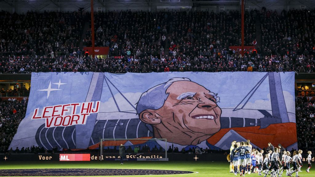 Maar voordat ze zich op het veld konden meten, werd op op indrukwekkende wijze stilgestaan bij de PSV-supporters die het afgelopen jaar overleden zijn.
