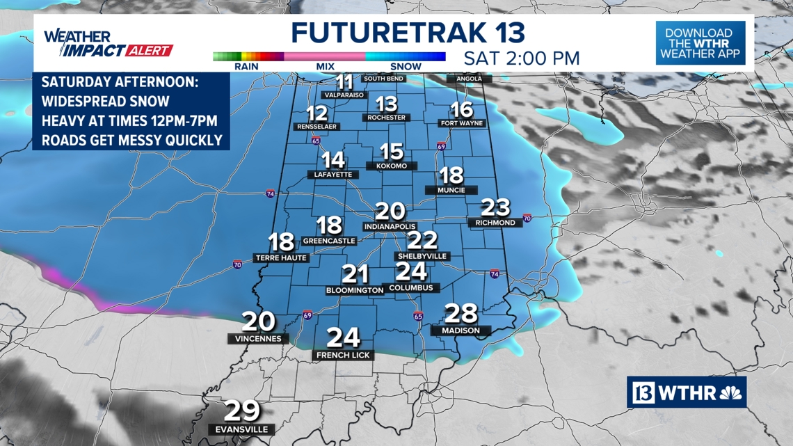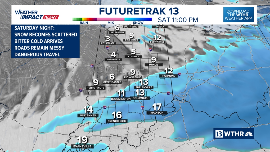 Central Indiana faces difficult journey as a snowstorm arrives Saturday, with important highway impacts anticipated because of falling temperatures and icy situations.
