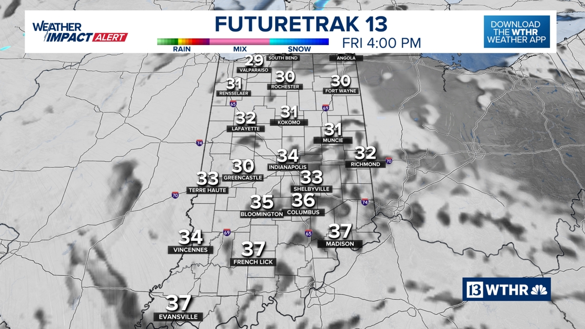 Potential 4-6+ inches band: Proper by way of the center of the area, together with the Indianapolis metro