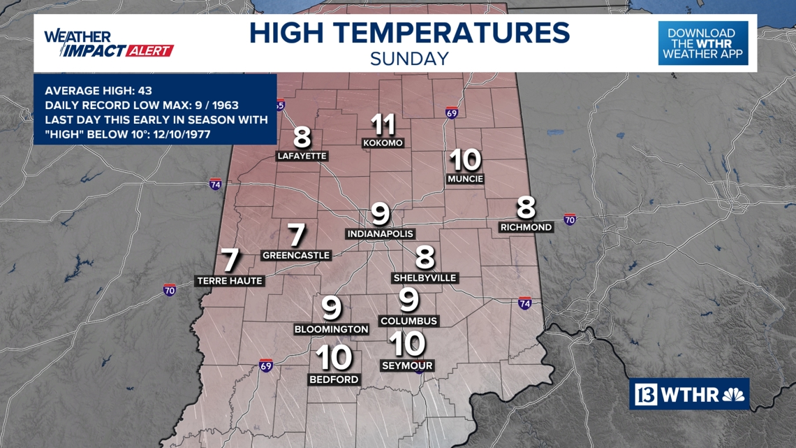 Temperatures all day: Solely single digits — presumably the earliest single-digit highs this early within the season since December 1977