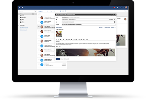 با استفاده از هوش مصنوعی و نرم افزار دفاع از ایمیل پیش بینی کننده، OX App Suite تلاش می کند تا صندوق ورودی شما را در برابر هرزنامه، ویروس ها، بدافزارها و حملاتی های فیشینگ